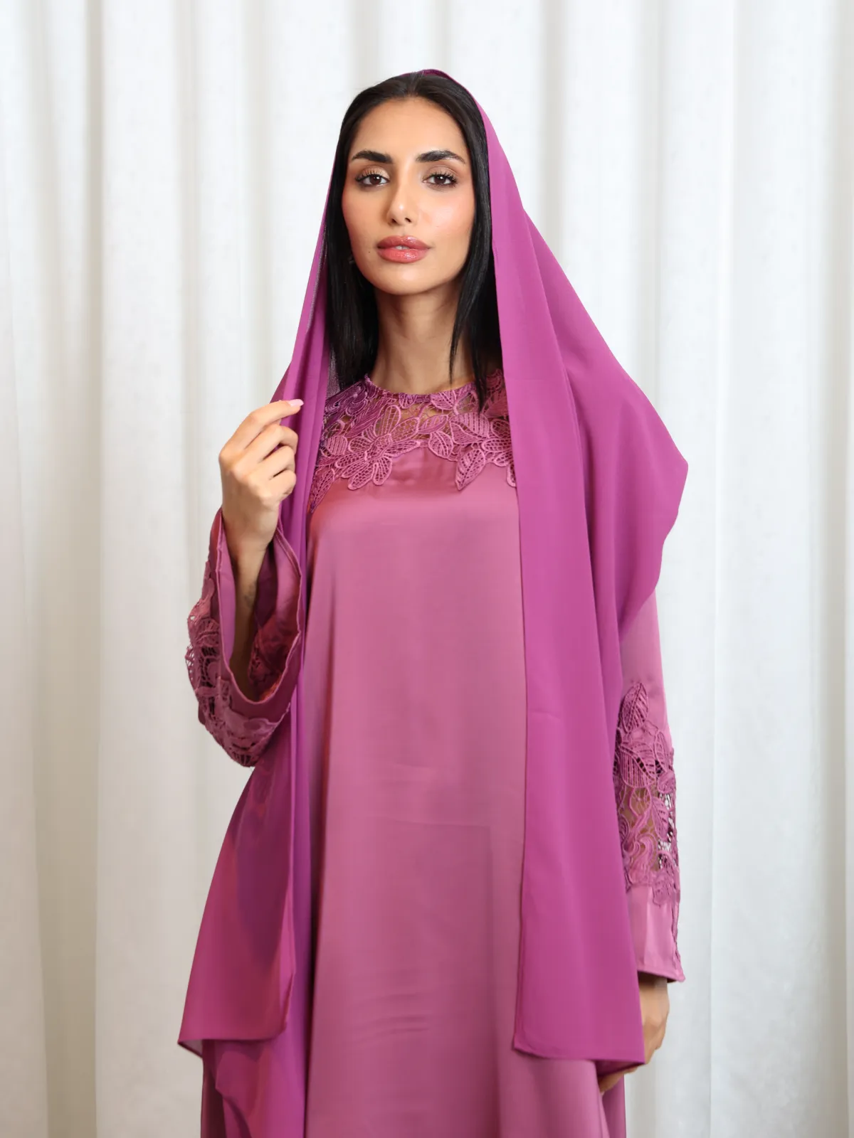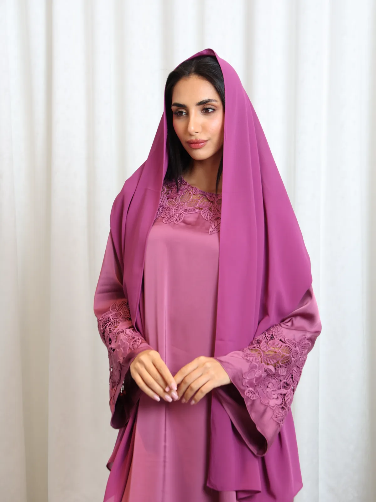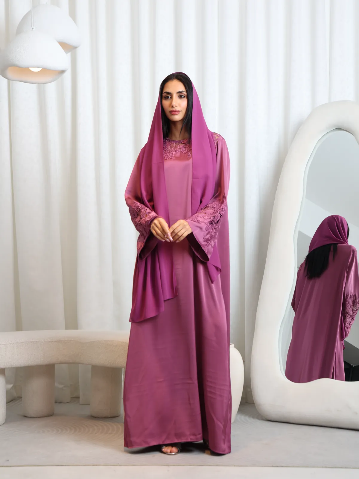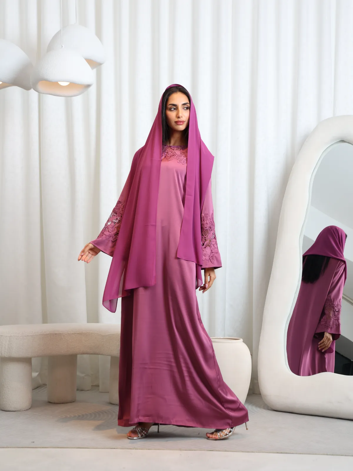 Self Love Mode – Elegant Embroidered Jalabiya with Headscarf ✨💜