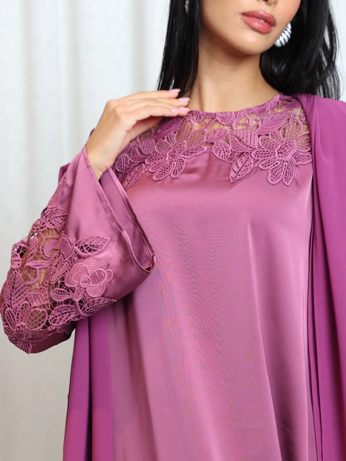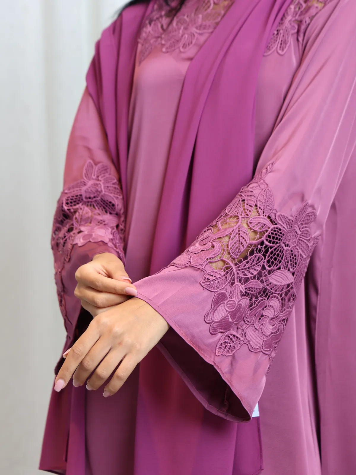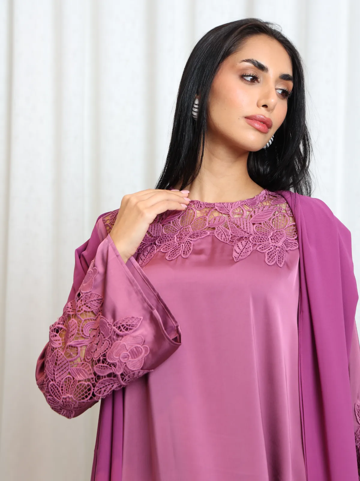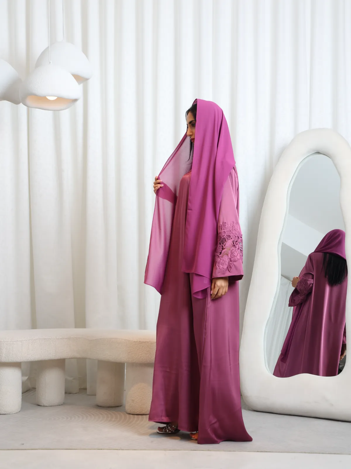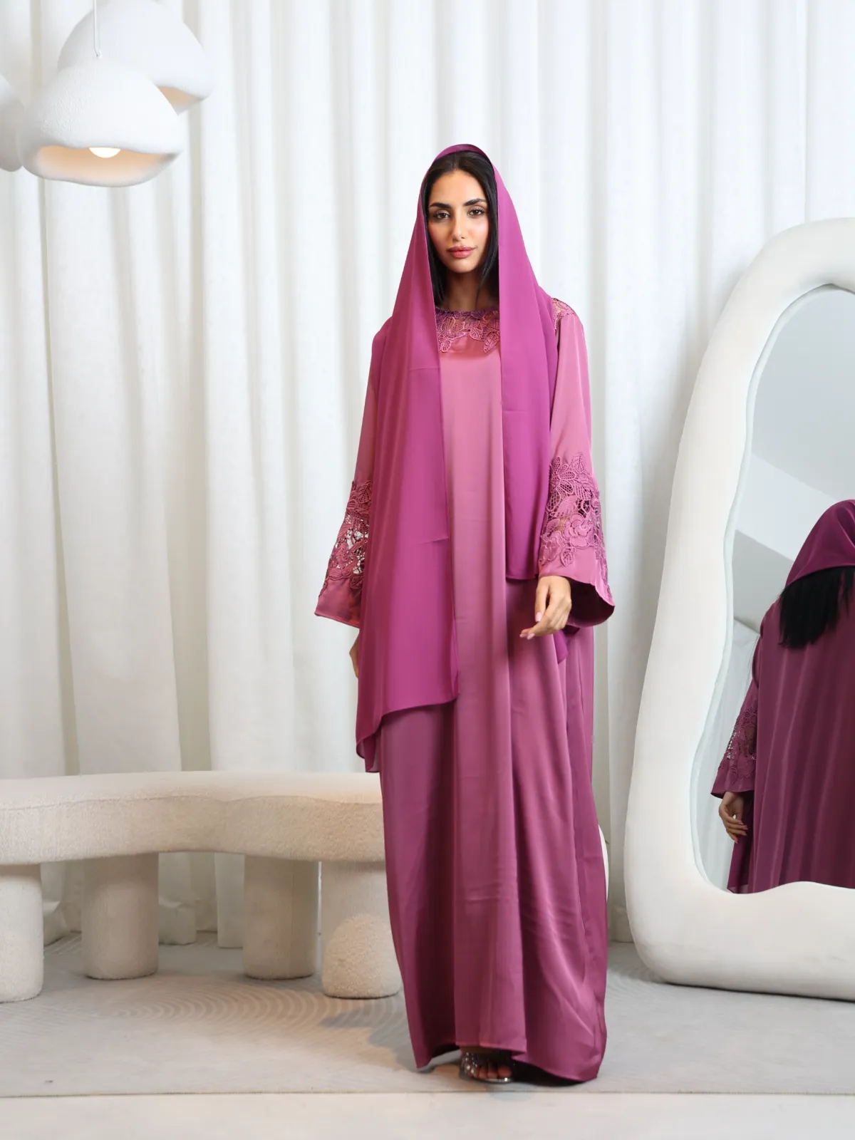 Self Love Mode – Elegant Embroidered Jalabiya with Headscarf ✨💜